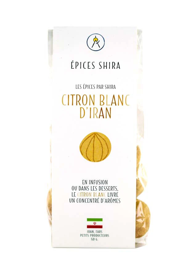 Nos citrons blancs proviennent de Fars, une province du sud-ouest de l’Iran. Si citron noir et citron blanc sont tous deux des citrons verts séchés (voir dessous), ils ne sont traditionnellement pas utilisés de la même manière. Le citron noir se plait dans les soupes, les ragoûts, les marinades… et le citron blanc est sublime en infusion. Son parfum plus sucré, plus citronné y est valorisé et ses chaleureuses notes de miel complètent le côté gourmand.