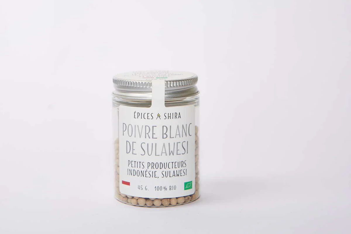 Le poivre blanc de Sulawesi est bien plus piquant et parfumé que le poivre noir classique (poivre de Malabar). C’est un poivre coup de cœur et ceux qui l’aiment n’hésiteront pas un instant à lui faire une place dans leur poivrier du quotidien.