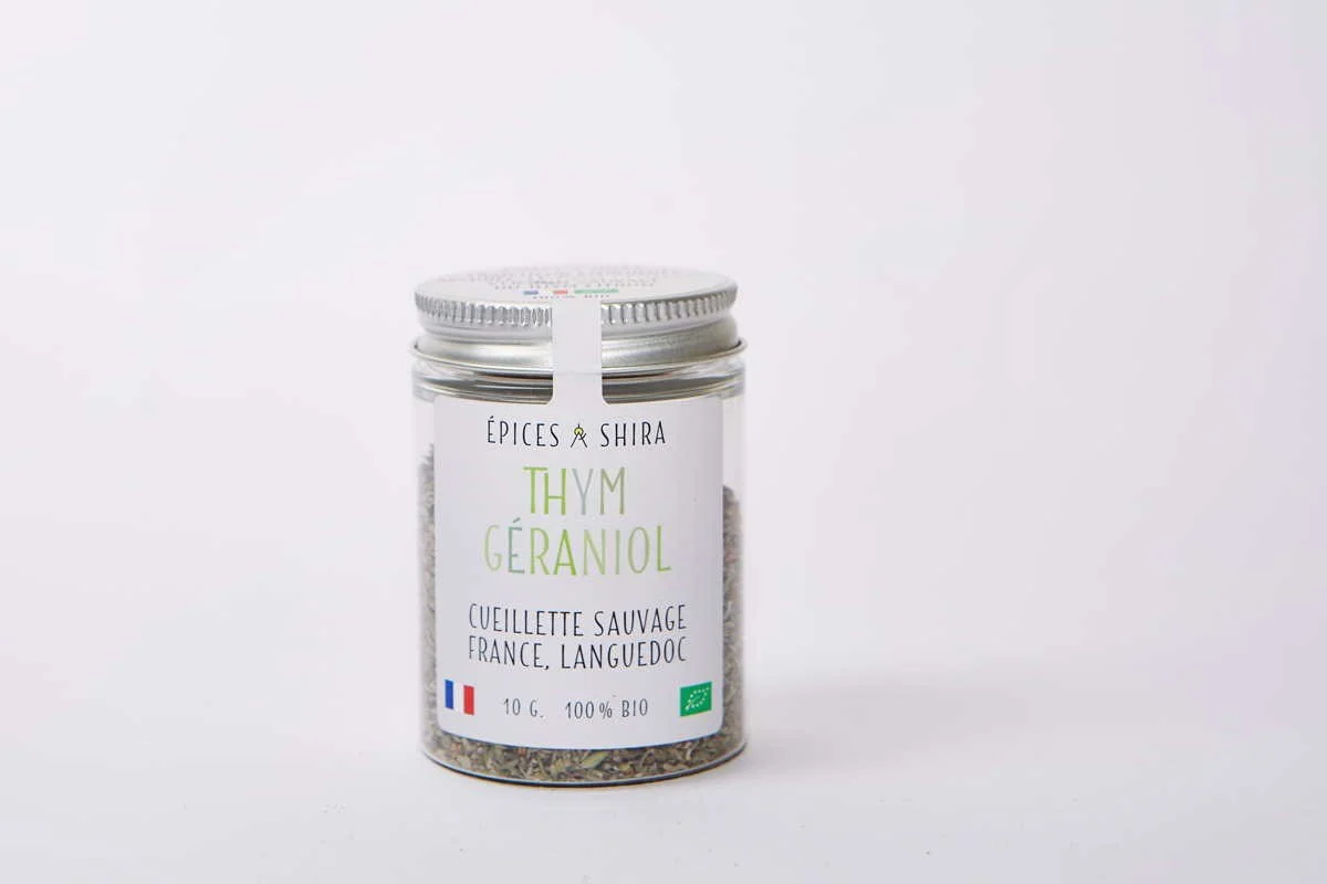 Même si le thym est l’un des aromates les plus populaires de la cuisine du sud de la France et du bassin méditerranéen, le thym géraniol s’utilise un peu différemment du thym classique (thym thymol).